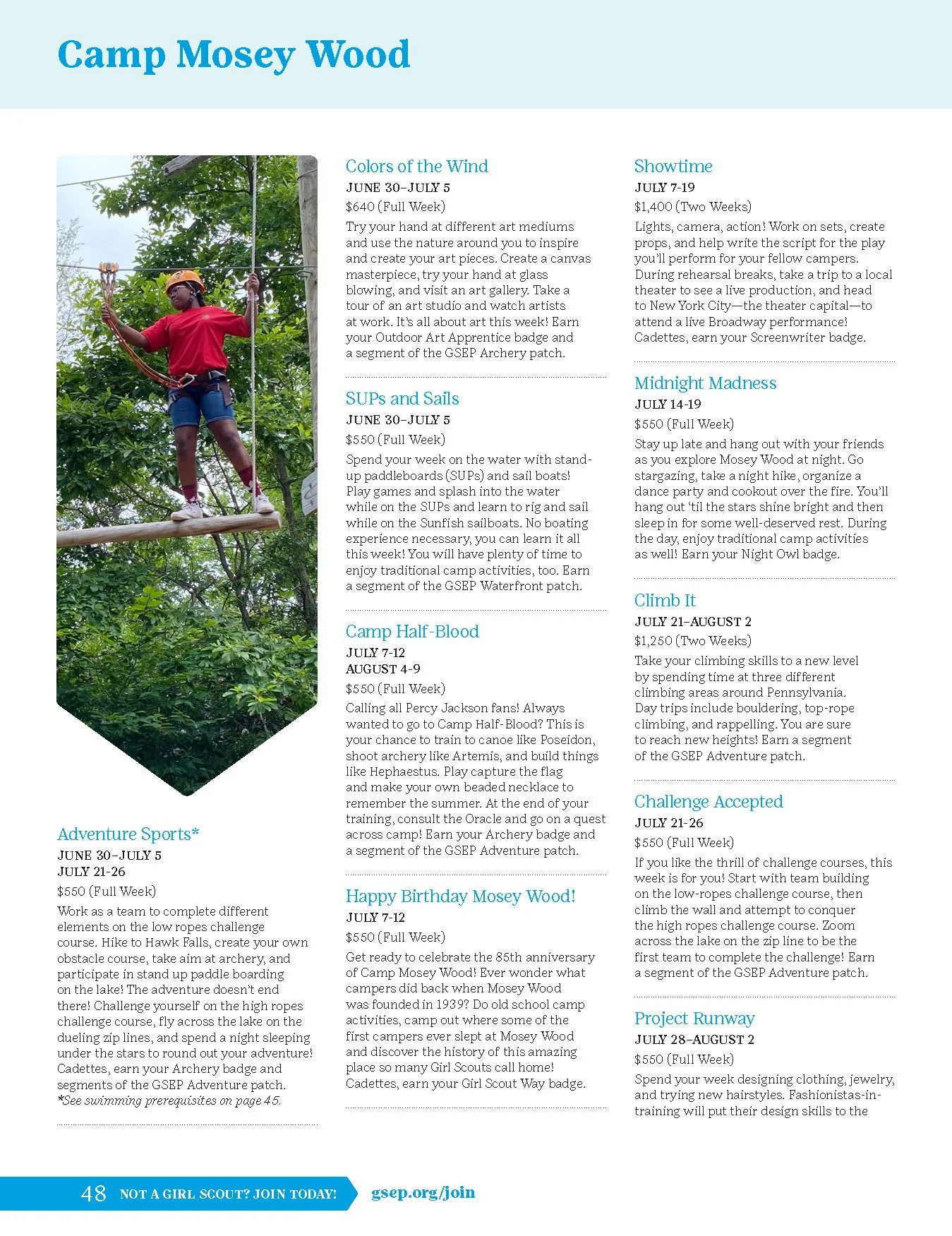 Published annually, the Camp & Program Guide is a comprehensive booklet detailing everything families need to know about summer camps and programs. It also includes a Cookie Program Guide.